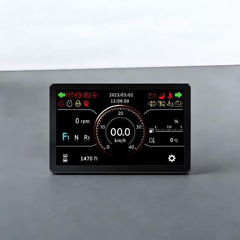 A:This 7-inch full-lamination touch screen is designed for forklifts, with 800×480 resolution and card swiping authentication. It features built-in Bluetooth, standard BLE, and optional 4G & GNSS modules. Equipped with 2 CAN channels, 12 digital I/O channels and customizable interfaces, it provides stable, flexible and intelligent display control for forklift applications.
